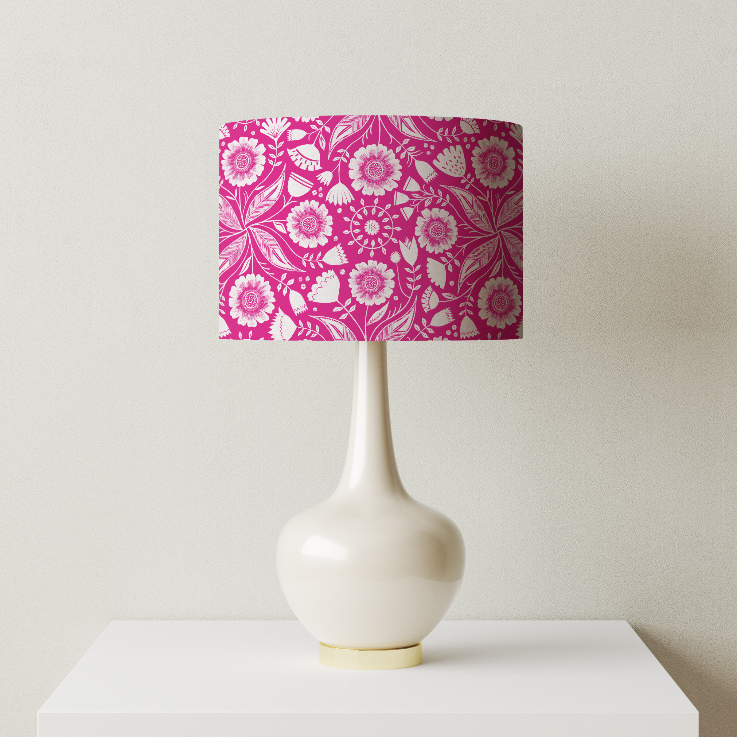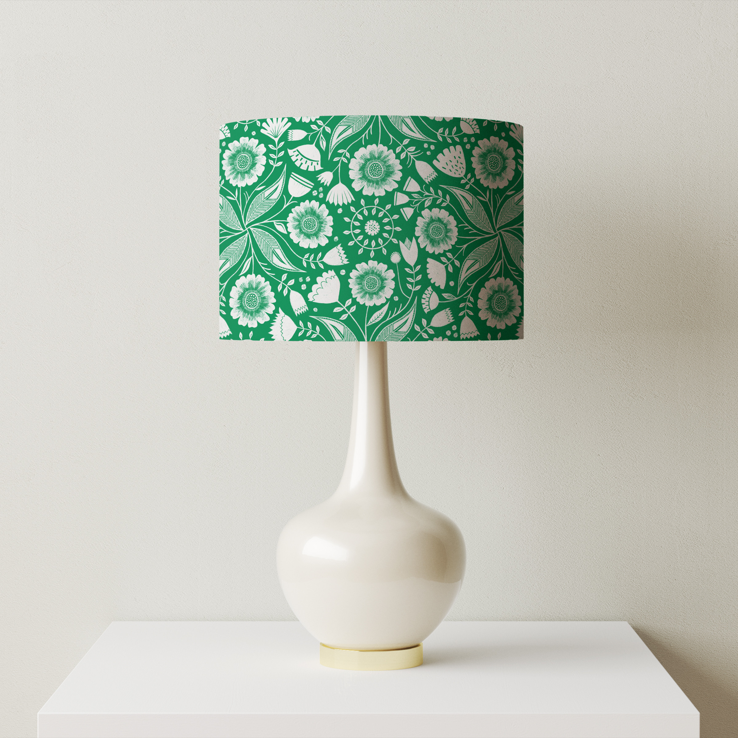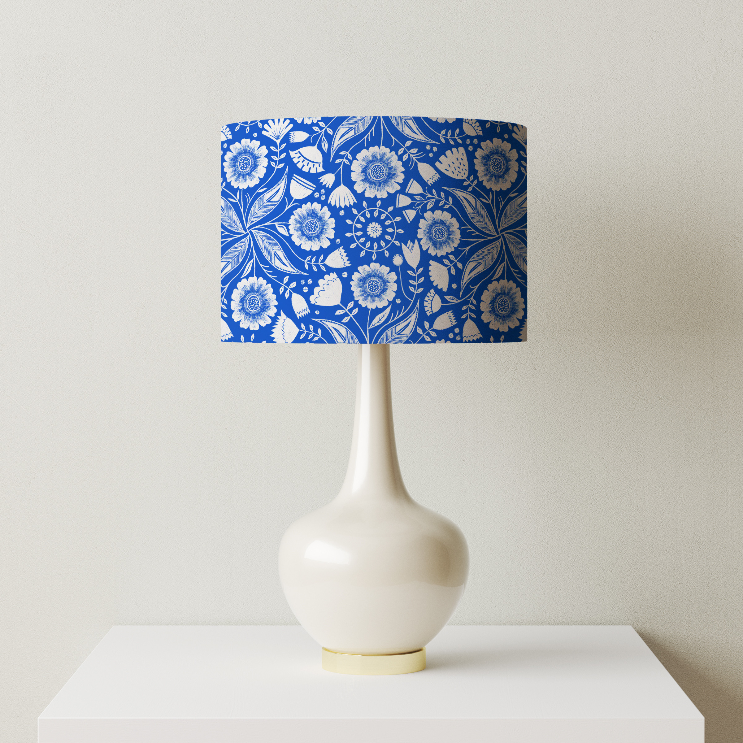 This lampshade has a diameter of 30cm/12″ and a height of 21cm/8″. It is made with a white lining and looks stunning when illuminated. It is handmade for you and can be made for a ceiling pendant or lamp base. Please select fitting at time of ordering.