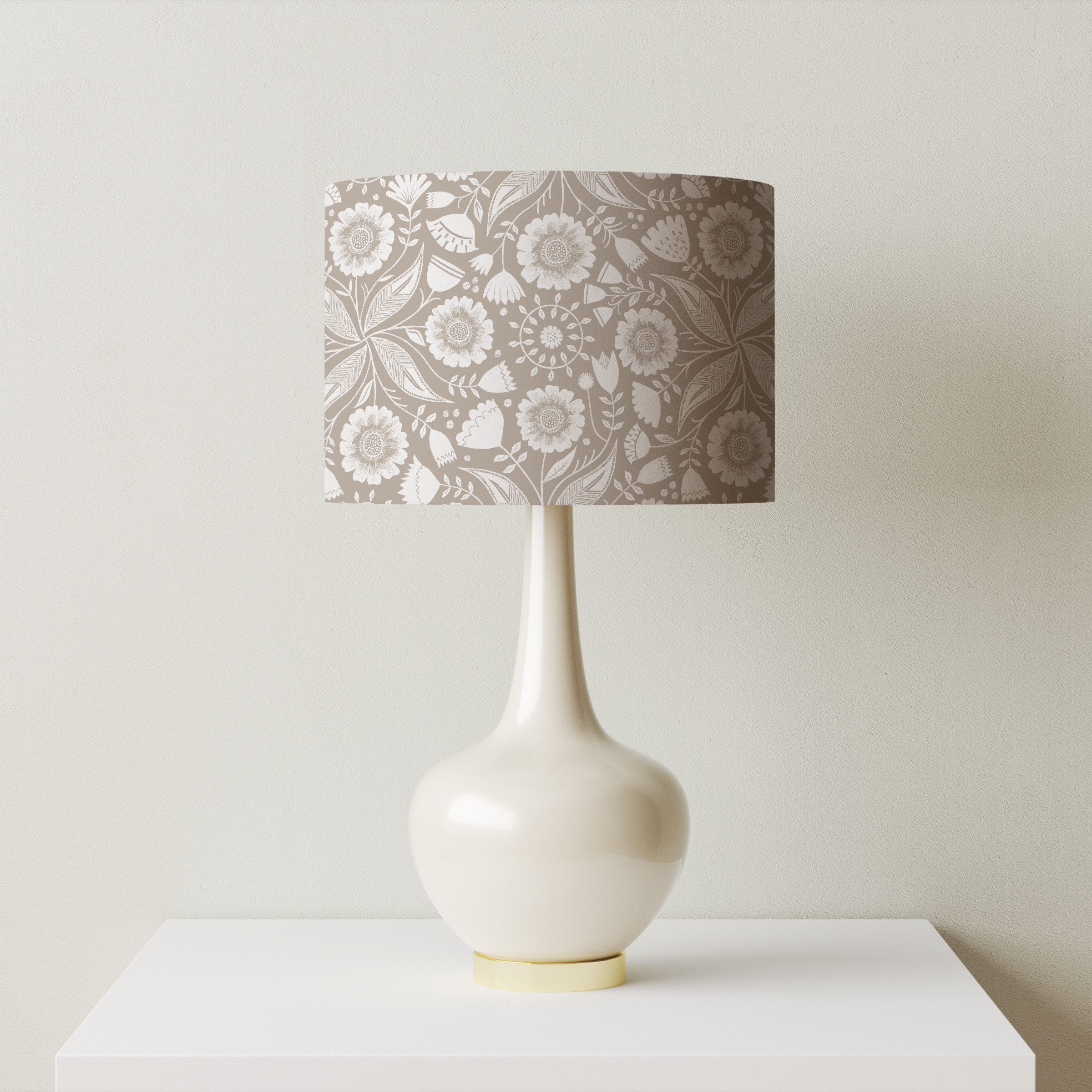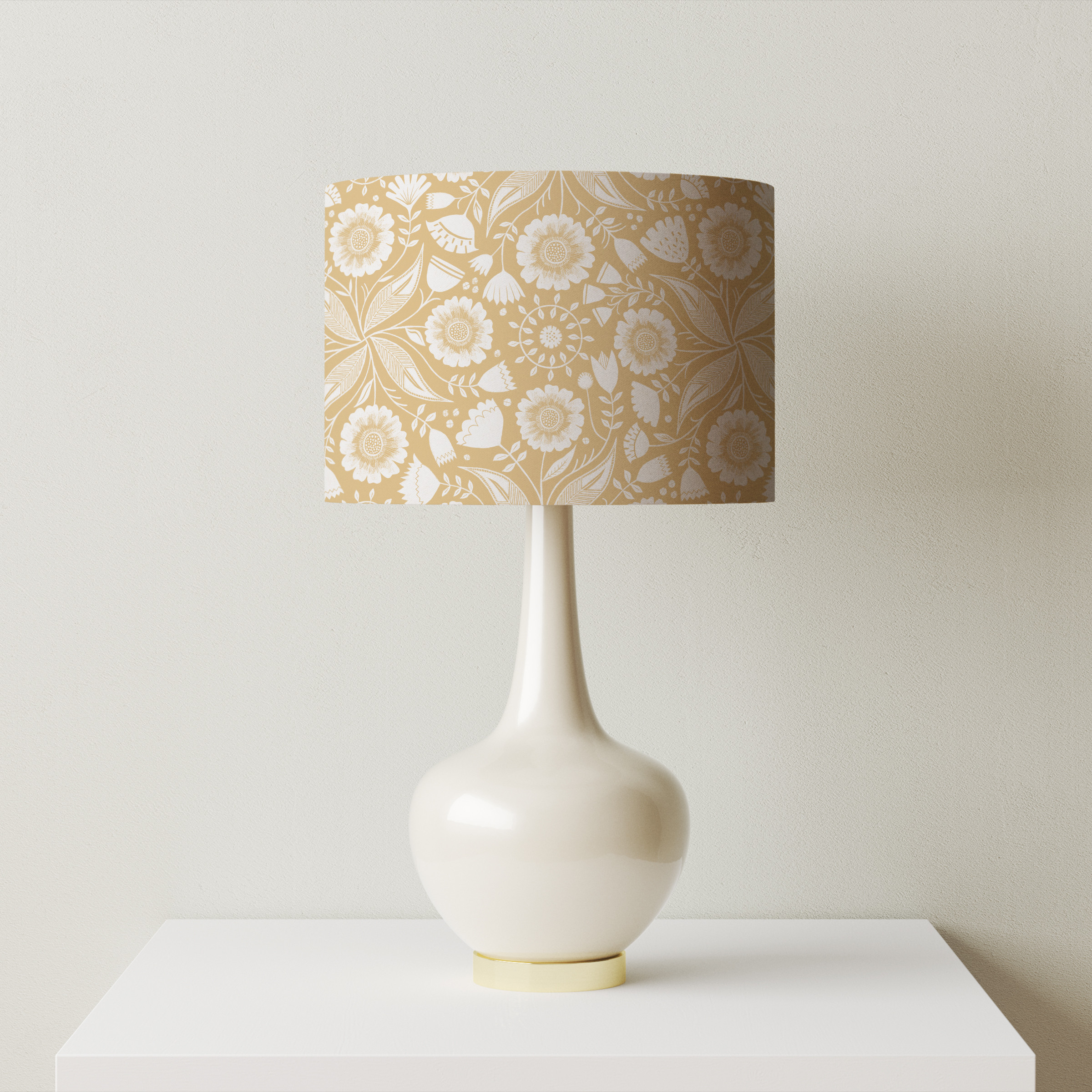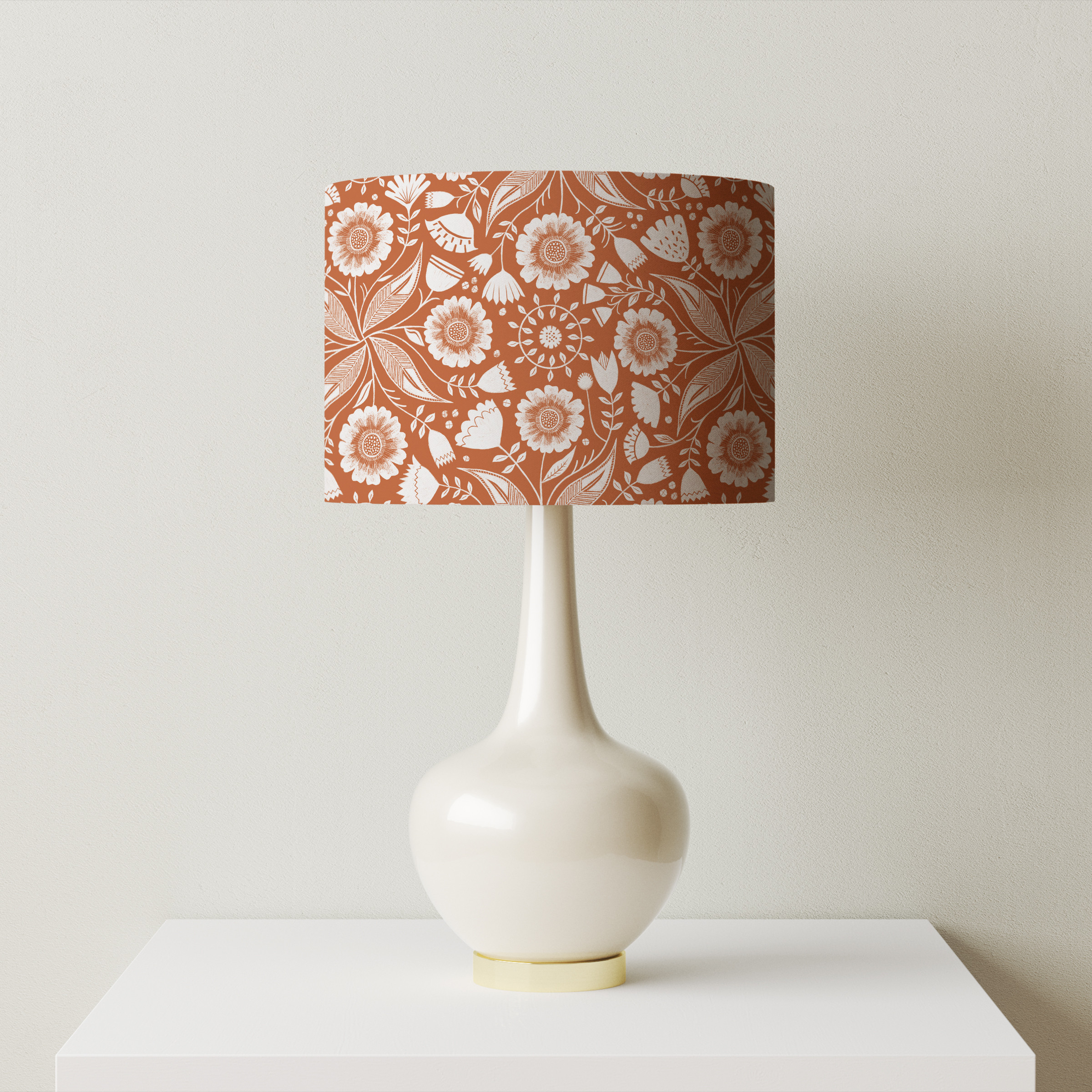 This lampshade has a diameter of 30cm/12″ and a height of 21cm/8″. It is made with a white lining and looks stunning when illuminated. It is handmade for you and can be made for a ceiling pendant or lamp base. Please select fitting at time of ordering.