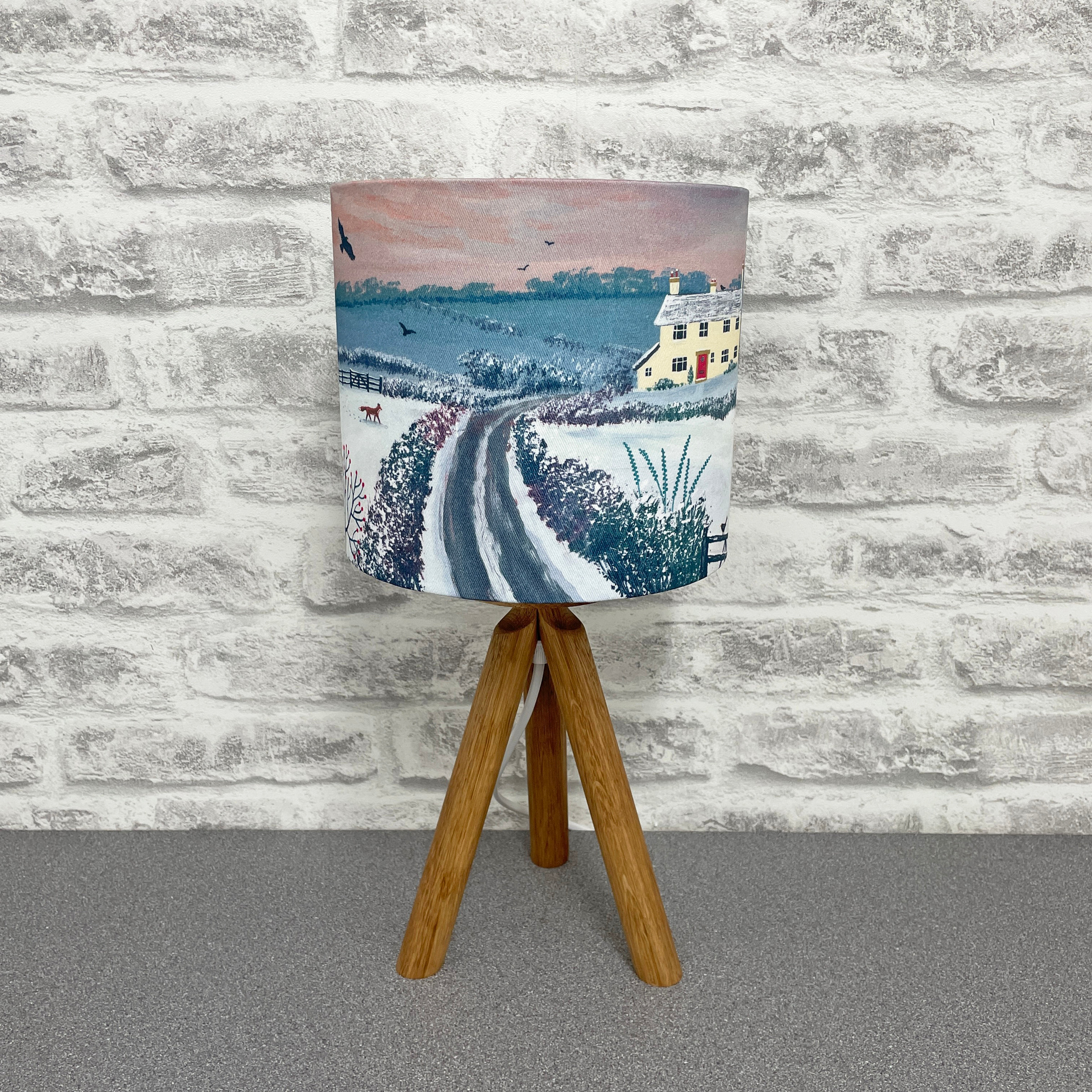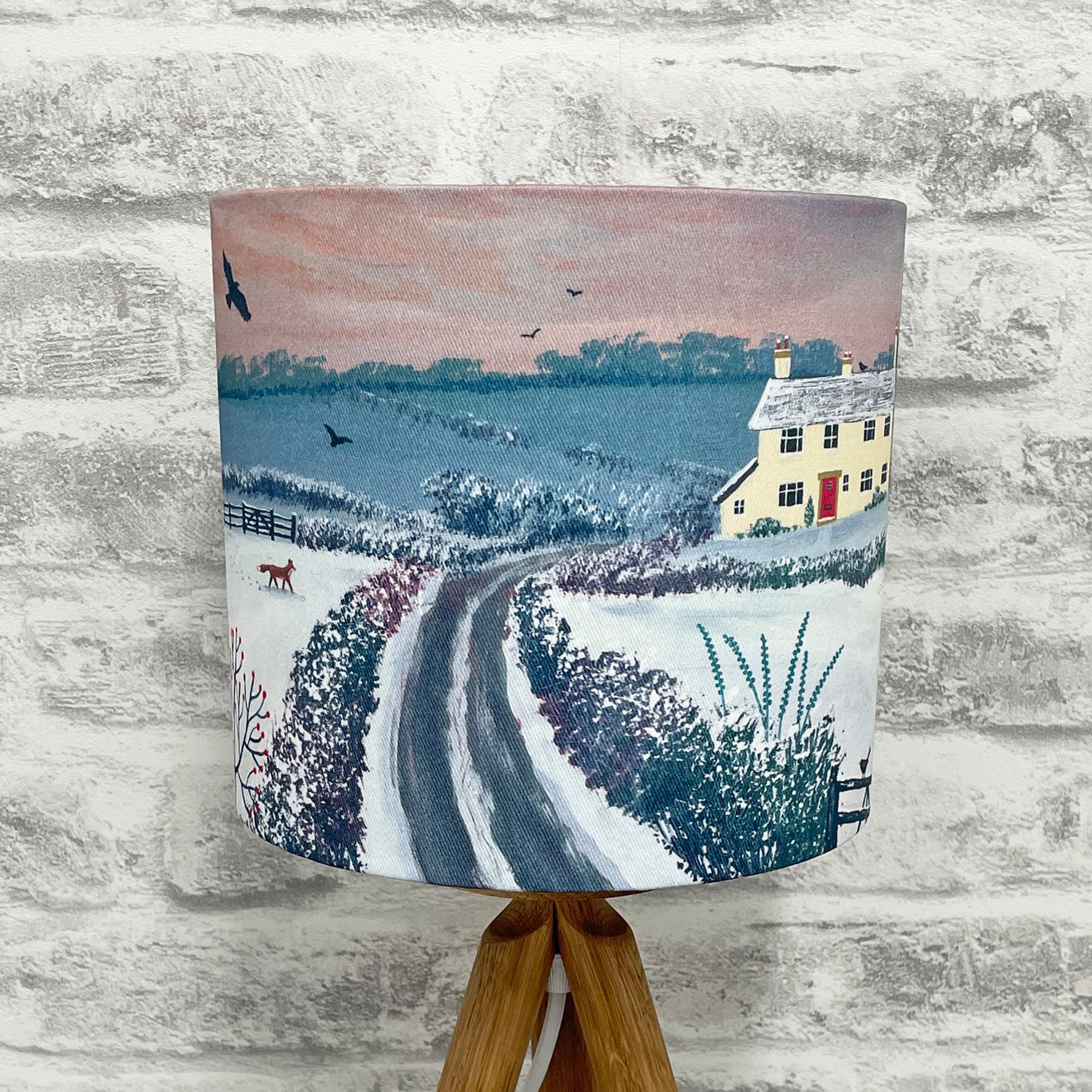 This lampshade has a diameter of 30cm/12″ and a height of 21cm/8″. It is made with a white lining and looks stunning when illuminated. It is handmade for you and can be made for a ceiling pendant or lamp base. Please select fitting at time of ordering.