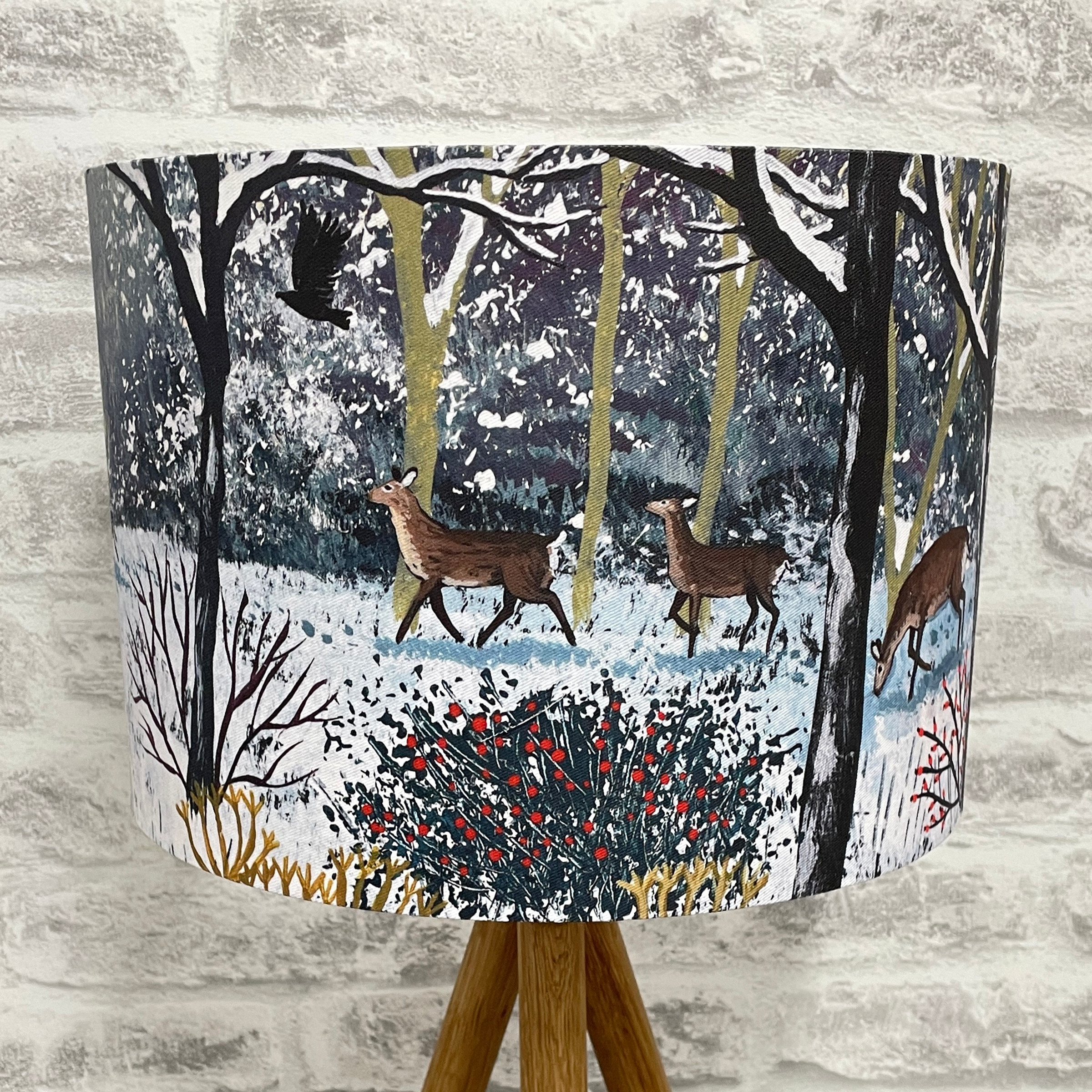 This lampshade has a diameter of 30cm/12″ and a height of 21cm/8″. It is made with a white lining and looks stunning when illuminated. It is handmade for you and can be made for a ceiling pendant or lamp base.  Please select fitting at time of ordering.